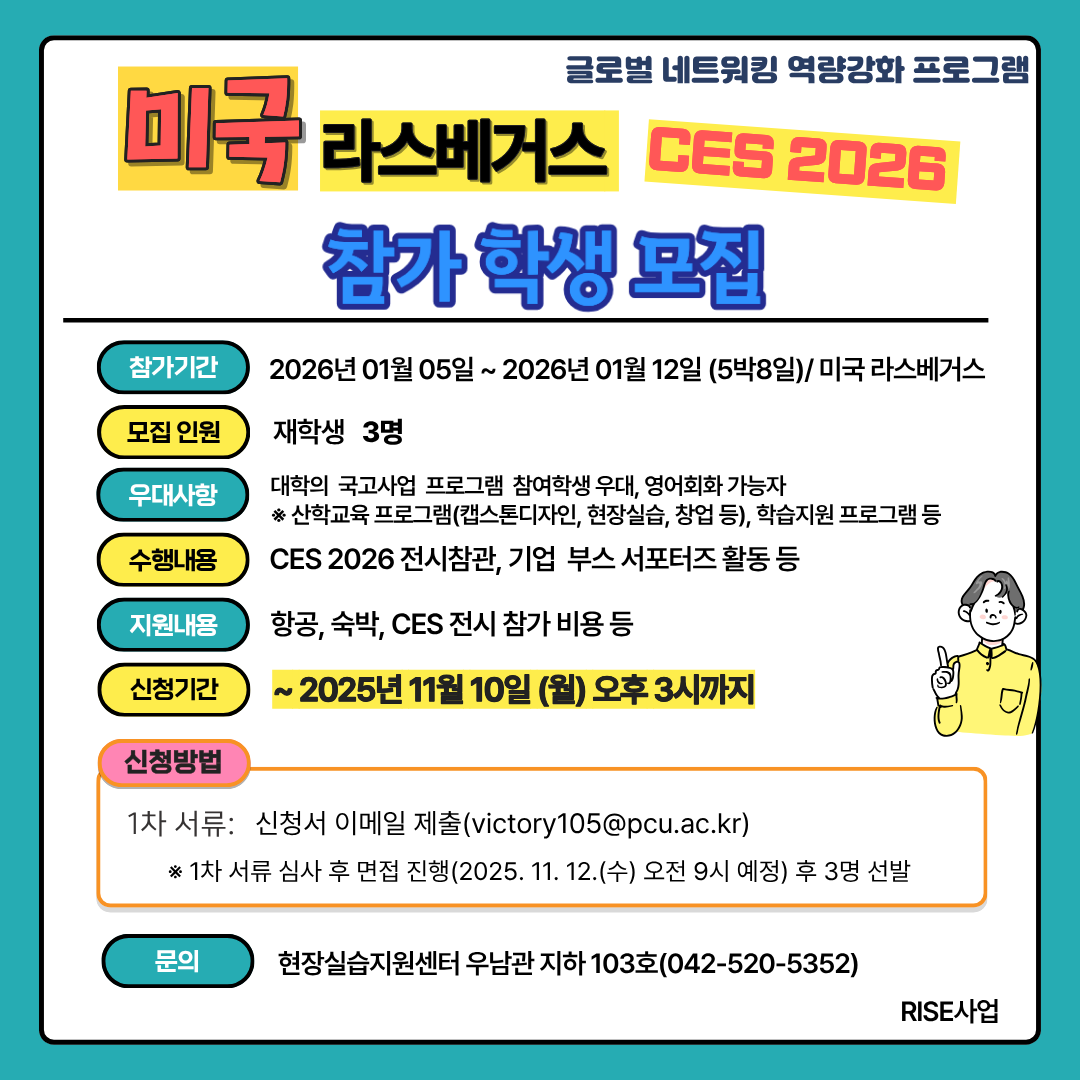 [현장실습지원센터] 글로벌 네트워킹 및 역량강화 프로그램(CES 2026) 참여학생 모집